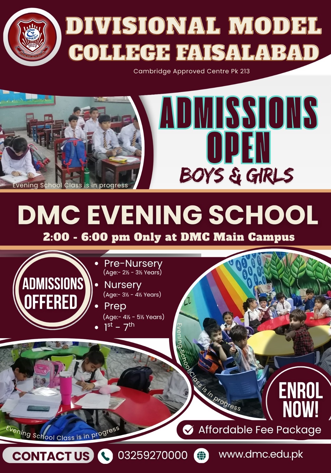 Divisional Model School as an English Medium Institution, was established in 1989, to cater the needs of students up to matriculation and '0' level examination. By the Grace of Allah, the school has now come of age and now it is a full fledge College in all its manifestations. We started F.Sc. (Pre Medical & Pre Engineering) and 'A1 level classes in the year of 2002. Our campuses provide an atmosphere in which students can develop and grow as a model of excellence. College is a buzz with activities of a host of clubs and societies managed by students themselves under the guidance of their teachers, professionals and qualified instructors.