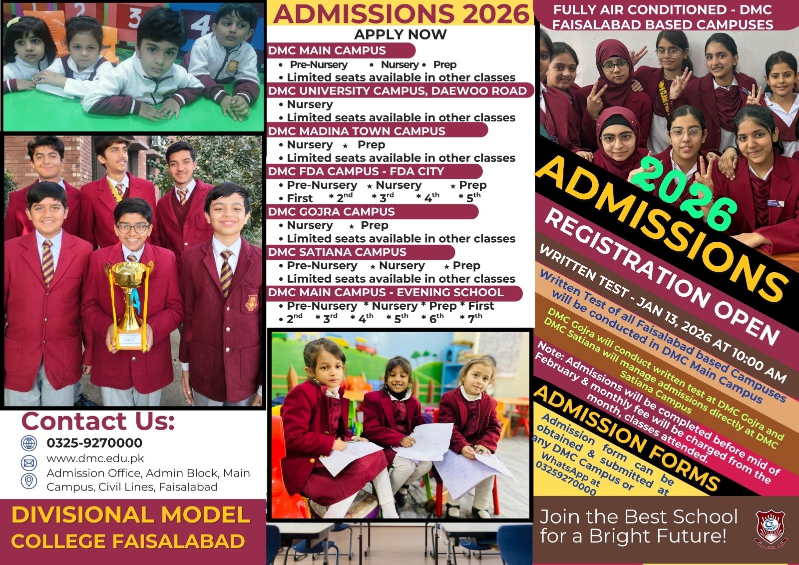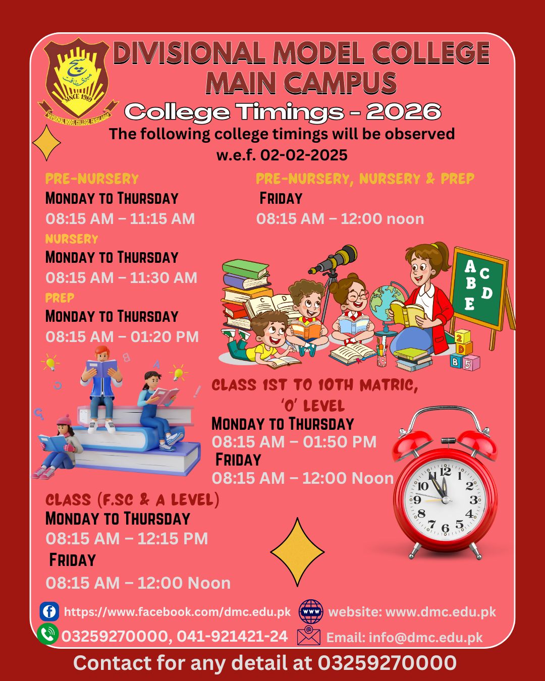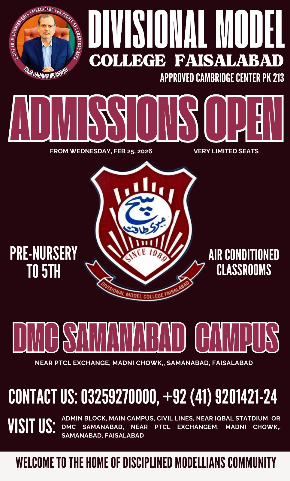 Divisional Model School as an English Medium Institution, was established in 1989, to cater the needs of students up to matriculation and '0' level examination. By the Grace of Allah, the school has now come of age and now it is a full fledge College in all its manifestations. We started F.Sc. (Pre Medical & Pre Engineering) and 'A1 level classes in the year of 2002. Our campuses provide an atmosphere in which students can develop and grow as a model of excellence. College is a buzz with activities of a host of clubs and societies managed by students themselves under the guidance of their teachers, professionals and qualified instructors.